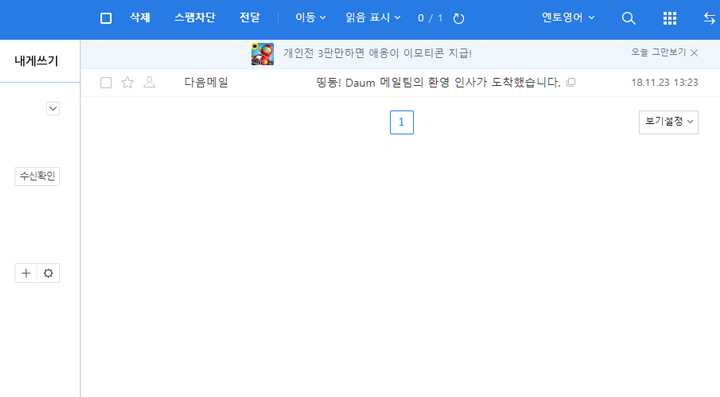 다음 메일 바로가기를 통해서 다음에 들어가 보시면 활용할 수 있는 것들이 메일함, 주소록, 환경설정, 청구서함 등으로 다양합니다. 간단한 인터페이스로 대용량의 메일을 쉽게 관리할 수 있으니 다음 메일의 장점이 돋보이는 것 같습니다.