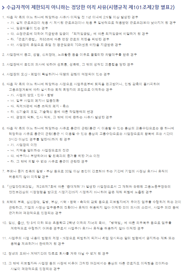 4. 이직 사유가 비자발적인 사유일 것 (이직 사유가 법 제 58조에 따른 수급 자격의 제한 사유에 해당하지 아니할 것)